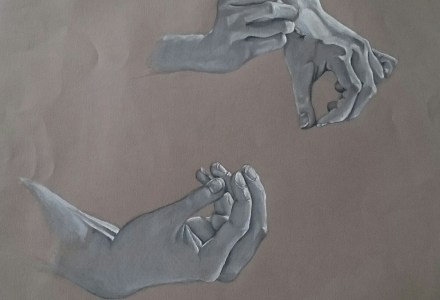 “Family feet portrait”/ “portrait des pieds de la famille”, acrylic on canvas, acrylique sur toile, 90x90cm
