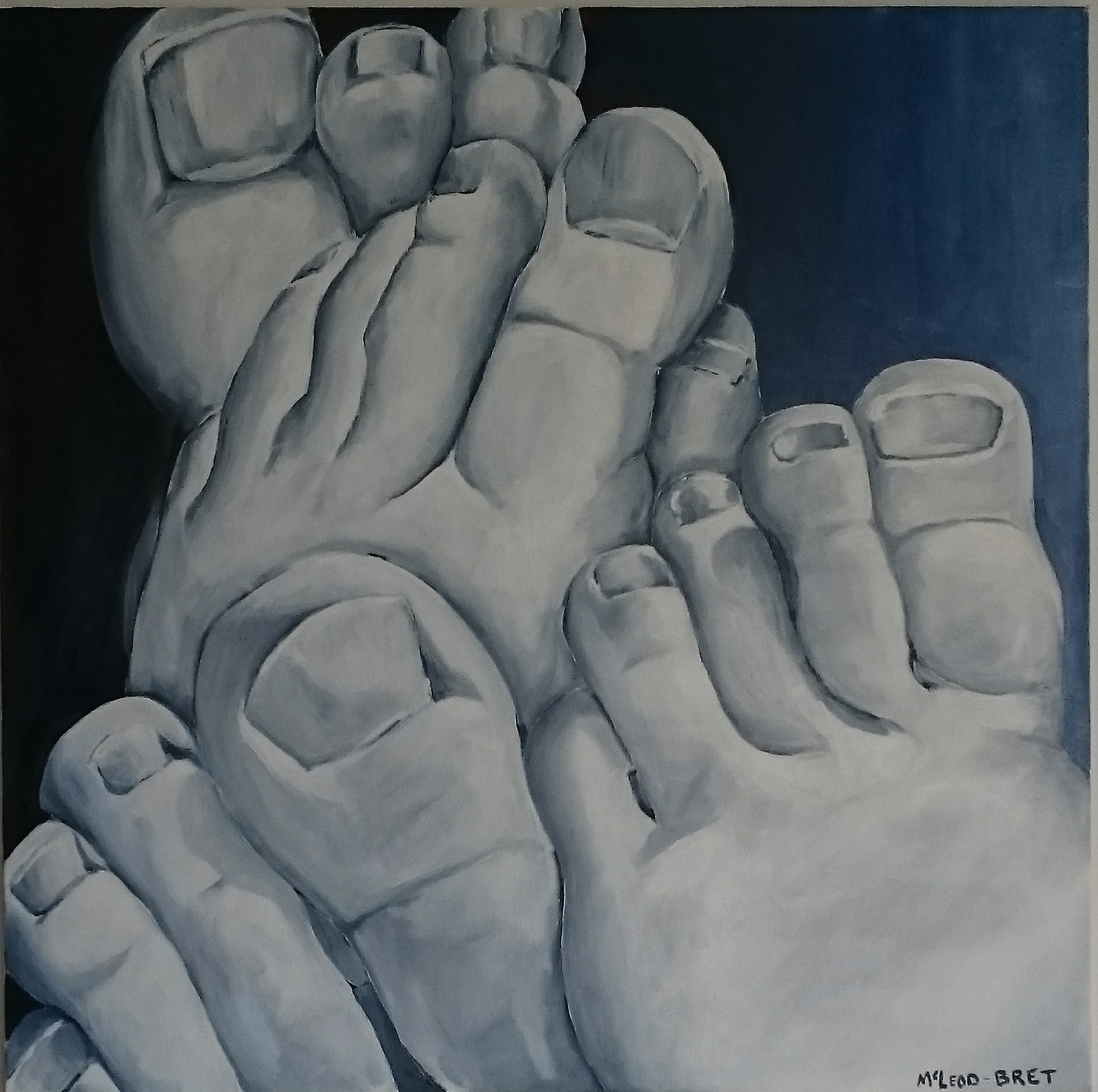 “Family feet portrait”/ “Portrait des pieds de la famille”, acrylic on canvas/ acrylique sur toile, 90x90cm